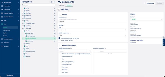 Yes, admins can download the InDesign package of a created design. This is useful when small adjustments need to be made or when the file must be shared with an internal designer or external agency.