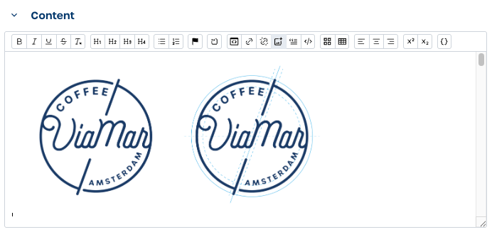 Select an image to insert and link the image to the DAM where you can zoom the image.