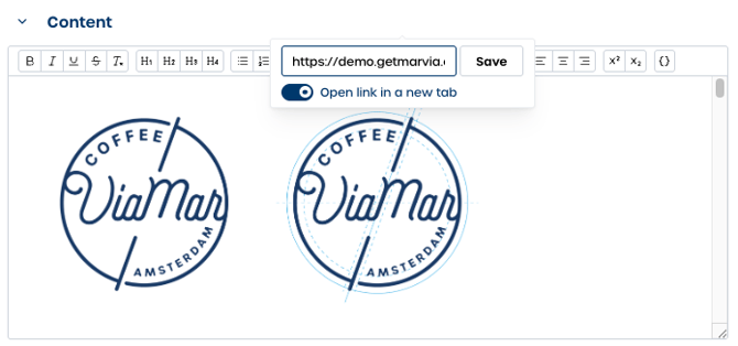 On the page of your wish, add an image to the content field by clicking the image button or drag and drop the image into the content field. Then click on the image and click on the link button. Copy the URL of the image in the DAM and add this link to the image.