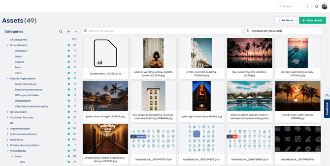 From the Assets section, you can search, filter and categorize all files for quick access.