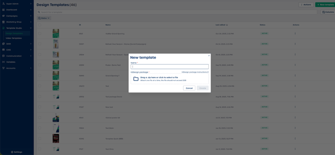 Set the Page Size, Bleed and Slug in the document setup. The Template Studio uses these settings.