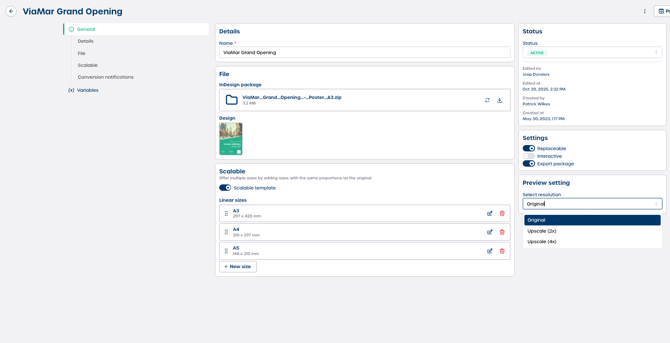 Original: Shows the standard resolution. Use this for normal editing and review.