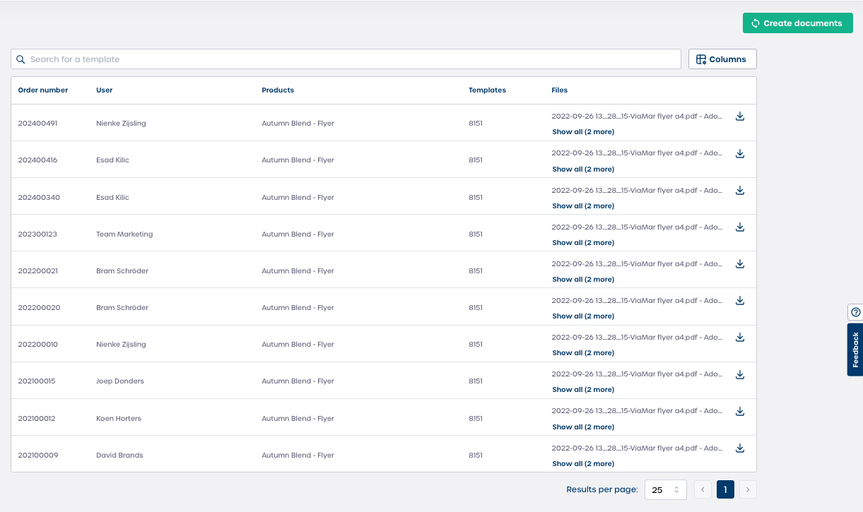 Use the search bar to locate specific orders quickly when many documents are generated.