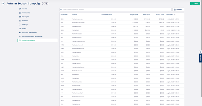 Locations with zero Budget spent and zero Total costs have not engaged with the Campaign. These may benefit from a follow up or reminder. -