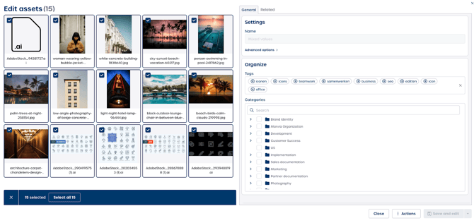 In the Tags section, you will see AI generated suggestions such as teamwork, security or office.