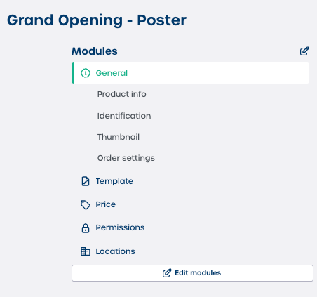 Click "Edit modules" to add or remove modules for the product.